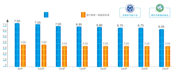 集國(guó)際知名品牌高效直流變頻壓縮機(jī)、新一代高效換熱系統(tǒng)、高效直流電機(jī)和高精度電子膨脹閥等多種名優(yōu)部件和直流變頻技術(shù)于一體,創(chuàng)造出IPLV(C)高達(dá)7.5的超節(jié)能新高度。