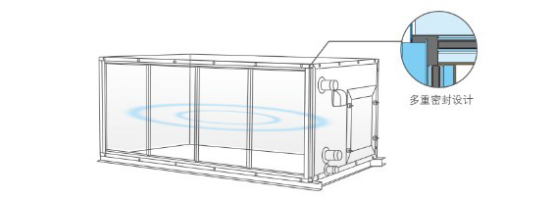 整機箱體的防冷橋系數(shù)滿足歐洲空氣處理機組標準EN1886的TB2級要求,防凝露效果出色,氣密性好。